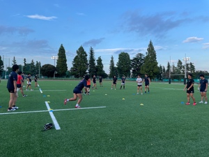 午前のBKはパススピードにフォーカスを当てたメニューとゲームを、FWはスクラムを中心に練習し、午後は強度の高いゲーム形式の練習を中心に行いました。