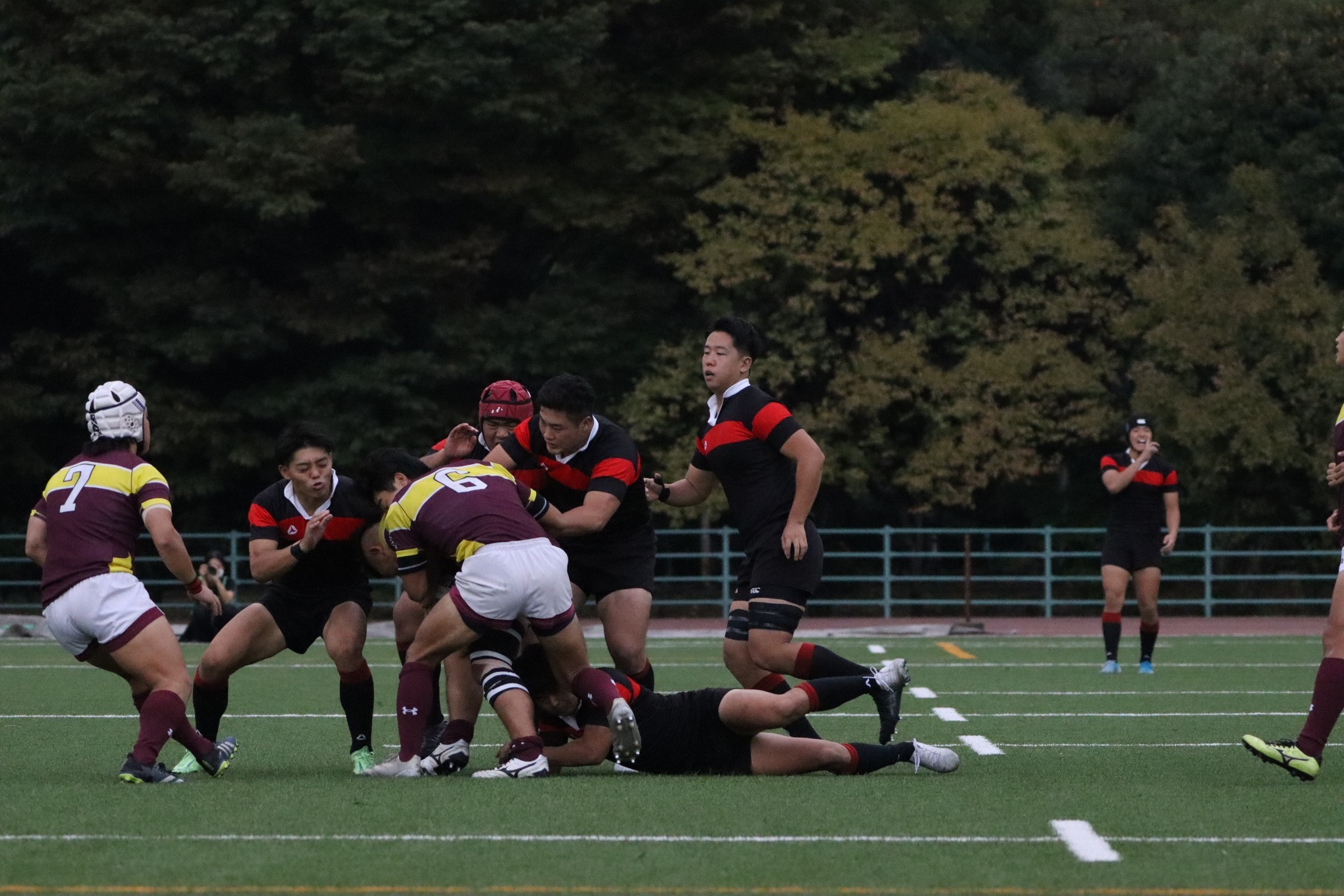 攻守を繰り返しながらも、本学がトライチャンスを掴んだのは後半35分を回った時です。